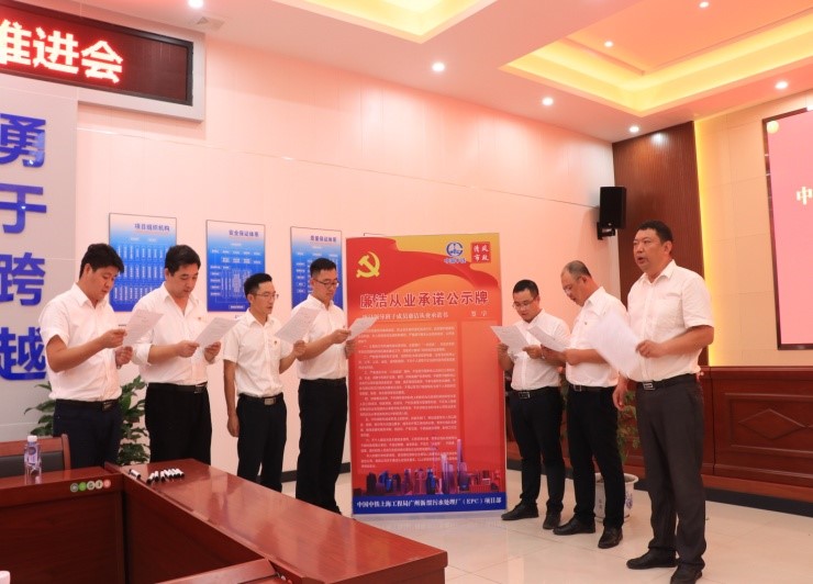 5月23日,公司第三屆企業(yè)文化節(jié)“清風市政”—項目部領(lǐng)導(dǎo)人員廉潔從業(yè)公開承諾活動在廣州瀝滘污水處理廠(EPC)項目部舉行,公司黨委書記尹朝援宣布了市政公司項目部領(lǐng)導(dǎo)人員廉潔從業(yè)公開承諾活動正式啟動,公司總經(jīng)濟師王小波、機關(guān)黨群各部門人員及項目部主要管理干部參加了啟動