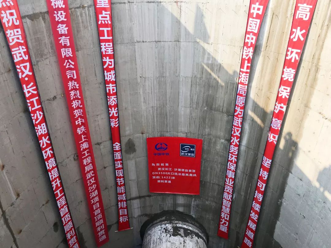 12月13日,公司承建的湖北省首例大口徑超長距離曲線水下頂管——長江、沙湖水環(huán)境提升工程沙湖公園W2-W3頂段順利貫通。長江、沙湖水環(huán)境提升工程中的管線工程南起于新生路泵站,北止于二郎廟污水處理廠,全長約5.78公里,需先后橫穿規(guī)劃武九綜合管廊、友誼大道隧道及現(xiàn)狀沙湖水面等多處節(jié)點。其中,沙湖公園W2-W3頂段長度1422.18米,順坡0.22%,為直線+曲線+直線頂管,其中曲線段長141.27米,曲線半徑為600米,施工難度大、技術(shù)含量高。頂管采用DN3500F型鋼承口式鋼筋混凝土管,管材外徑4140毫米。施工過程中,項目部認(rèn)真優(yōu)化施工方案,精心組織施工生產(chǎn),克服了地質(zhì)條件差、施工難度大、安全風(fēng)險高等不利條件,頂管管道順利穿越沙湖。