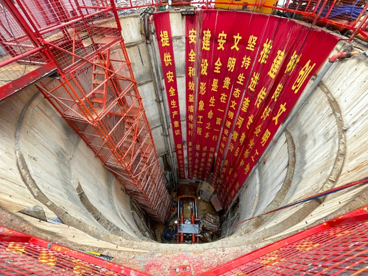 該頂管段總長度為529m,兩頭直線頂管共190m,中間曲線頂管339m,曲率半徑為650m,管頂覆土8.5-16.1m。管道采用管壁厚200mm、內徑2000mm、外徑2400mm的三級鋼筋混凝土管,標準節為2m,使用雙道橡膠圈密封止水。為順利穿越中風化石灰巖地質,項目部積極開展施工調查、布置監控量測,優化施工方案、編制應急措施等。下一步,項目部全體人員將繼續攻堅克難、頑強拼搏,為頂管施工的順利進行保駕護航。